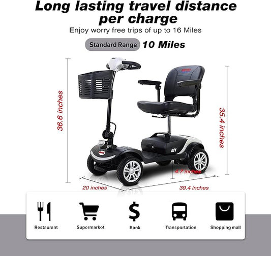 4 Wheel Mobility Scooter For Seniors Compact Heavy Duty Mobile Powered Mobility Scooters Electric Powered Wheelchair Device For Travel Adults Elderly
