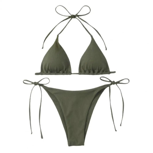 2Pcs/Set Women Bathing Suit Ribbed Backless Pads Women Bikini Set Halter Triangle Bra Side Tie Thong Swimwear Women's Clothing